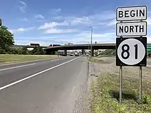 Route 81 is a state highway in the U.S. state of New Jersey. The route is a freeway connector between exit 13A of the New Jersey Turnpike (Interstate 95) and U.S. Route 1/9 near Newark Liberty International Airport. It runs for 1.18 miles (1.90 km), entirely within the city of Elizabeth in Union County. A freeway called Route S100 was initially proposed on the current alignment of Route 81 in 1938; it, along with its parent Route 100, was never built. The current route was conceived in the 1960s as a freeway replacement for Route 164, which followed Humboldt Avenue, a surface road. It was to be designated Route 76, but was renumbered to Route 81 when Interstate 76 was created in New Jersey.