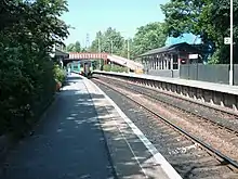 New Pudsey railway station is in Farsley, West Yorkshire, England, on the Calder Valley line from Leeds to Bradford Interchange, Halifax, Huddersfield, Manchester Victoria, and Blackpool North. Lying 5.75 miles (9.25 km) west of Leeds, it serves as a commuter station for the western edge of the Leeds conurbation.