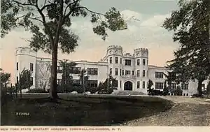 New York Military Academy (NYMA) is a college preparatory, co-ed boarding school in the rural town of Cornwall, 60 miles (97 km) north of New York City, and one of the oldest military schools in the United States. Originally a boys' school, it started admitting girls in 1975. On March 3, 2015, NYMA filed for Chapter 11 bankruptcy protection, and was sold at auction to Chinese-owned foundation Research Center on Natural Conservation Inc. which reopened the school in November 2015. The Research Center then poured millions of dollars into the campus to support instruction and capital improvements. The campus also has been host to popular camps like Camp All America into the 1980s and currently the NYMA Leadership Program.