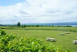 Agriculture is a major component of the New York economy.[2] As of the 2012 census of agriculture, there were over 35,000 farms covering an area of 7 million acres (28,000 km2) which contributed $5.4 billion in gross sales value and $1.2 billion in net farm income to the national economy.[2][3][4] The Finger Lakes region is the center of state agriculture, and the state is a top-ten national producer of cow milk, apples, grapes, onions, sweet corn, tomatoes, and maple syrup.[4][2]