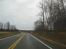 US 104 was assigned in April 1935, extending from Niagara Falls to the town of Mexico by way of several previously numbered highways. East of Rochester, the route mostly supplanted NY 3; however, from the junction of Water and Main Streets in Red Creek to Southwest Oswego, it used much of the post-1920 routing of legislative Route 30 instead, by this time designated as NY 3F. The former routing of NY 3 between the two locations was redesignated as NY 104A.[2] In the early 1970s, the portion of the US 104 super two between Huron and Red Creek was completed and opened to traffic. NY 104A was extended 1 mile (1.6 km) southward over US 104's former routing to meet the new highway south of the village.[10][11]