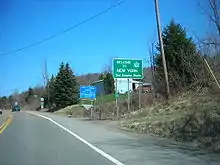 New York State Route 14 (NY 14) is a state highway located in western New York in the United States. Along with NY 19, it is one of two routes to transect the state in a north–south fashion between the Pennsylvania border and Lake Ontario. The southern terminus is at the state line in the Chemung County town of Ashland, where it continues south as Pennsylvania Route 14 (PA 14). Its northern terminus is at a cul-de-sac on Greig Street in the Wayne County village of Sodus Point. NY 14 has direct connections with every major east–west highway in western New York, including Interstate 86 (I-86) and NY 17, U.S. Route 20 (US 20) and NY 5, and the New York State Thruway (I-90). It passes through two cities—Elmira and Geneva—and serves many villages as it traverses the state.