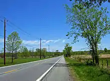 Past the elementary school, NY 17K runs parallel to the nearby I-84 but remains undeveloped, with the odd house, store or side street breaking the woods.[4] Much of the land here is owned by the county as part of its Farmers' Museum, which surrounds the Nathaniel Hill Brick House, an early settler's home still occupied by his descendants.[6] The next signalized intersection, Coldenham Road, provides a direct route to Walden for traffic coming from the east. NY 17K continues on toward its next light, situated at the junction with NY 747, a north–south route connecting NY 17K to I-84 and Stewart International Airport.[4]