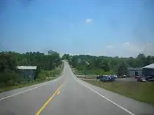 For the next several miles, NY 33 runs parallel to the Thruway and very close to it, with both roads visible from the other. Much of this section of Lancaster has remained rural in character;[8] however, that began to change in the mid-1990s when Tops Friendly Markets, the regional supermarket chain headquartered in nearby Williamsville, chose a site near the Gunnville Road intersection for a major distribution center.[10] It necessitated the widening of the highway and construction of a traffic light and turn lanes at its entrance.[8]