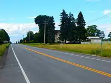 NY 408, also known in the area as Nunda–Dalton Road, begins at a quiet intersection with NY 70 at the hamlet of Dalton in the southern portion of the town of Nunda. It follows a mostly straight and rural road, save for one easterly deviation to bypass a hill, for 2 miles (3.2 km) to the village of Nunda, where it takes the name State Street. In the center of the village, NY 408 intersects NY 436, another route of regional importance. From Nunda, it continues as Mount Morris–Nunda Road in the same direction for the next 10 miles (16 km) through open farmland and meadows in the towns of Nunda and Mount Morris. Midway along this stretch, County Route 3 (CR 3),[4] formerly the westernmost portion of NY 258,[5] leaves to the east.[4]