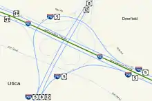 | Utica | 64.13 | 103.21 | Eastbound exit and westbound entrance | ||||