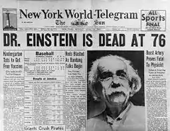 ![]() Front page of the New York World-Telegram dated August 7, 1945, featuring the atomic bombing of Hiroshima, Japan. | |