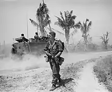 As with other infantry companies of the Australian battalions, the New Zealand infantry companies too sometimes conducted independent operations or were temporarily put under the operational control of 1 ATF directly or under other Australian Battalions or units, and conducted operations with them, e.g Whisky 3 Company's mortar section conducted numerous independent operations with 3rd Cavalry Regiment in 1970, and the Company itself spent some time on Long Sơn Island directly under 1 ATF Command, and later under 8 RAR for some months, also in 1970.[29][30][31] Both RNZIR companies conducted a number of independent, company-level land clearing and mine sweeping operations providing security for Australian and American engineer teams. Several Army of the Republic of Vietnam (ARVN) units underwent training under both New Zealand companies at various times.[32][33]