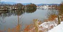 Located at the Great Oxbow of the Connecticut River, with vast tracts of beautiful and fertile intervale, the area was a favorite of the Indians. Rivers teemed with salmon and brooks with trout.[4] Prior to European settlement, the Newbury area was the location of a village called Cowass or Cowassuck of the Pennacook tribe.[5] Cowass in Abenaki is "Coo-ash-auke," meaning "place of pine trees," and was a general name these people gave to the upper Connecticut River Valley and Lakes region.[6] It was first settled by English colonists in 1762 by Samuel Sleeper and family. One of the New Hampshire grants, Newbury was chartered by Governor Benning Wentworth on March 18, 1763, to Jacob Bayley and 74 others, some from Newbury, Massachusetts.[4]