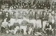 The second kit was a brief change in colours during the mid-1880s, this kit was made up of a red and white striped shirt, with navy shorts and black socks. It is considered highly ironic in the History of Newcastle United, because the club's main rivals Sunderland used the same colours.[6]