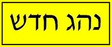 For two years after passing the exam, the driver is required to affix a rectangle P-plate bearing the words "New Driver" in Hebrew language (נהג חדש; optionally, נהגת חדשה for female driver, or נהג\ת חדש\ה that suits both male and female drivers). The law defines the plate should be light-reflective with yellow background and black letters, it has to be fixed in a corner of the rear window, and there are lower limits on plate's size and width of the letters. The law restricts the usage of P-plates to new drivers only; the P-plate has to be fixed if and only if the person that drives the vehicle is a new driver.[9]