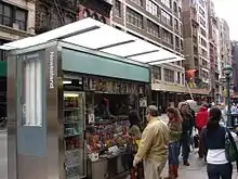 A newsagent's shop or simply newsagent's or paper shop[1] (British English), newsagency (Australian English) or newsstand (American and Canadian English) is a business that sells newspapers, magazines, cigarettes, snacks and often items of local interest. In Great Britain, Ireland and Australia, these businesses are termed newsagents. Newsagents typically operate in busy public places like city streets, railway stations and airports. Racks for newspapers and magazines can also be found in convenience stores, bookstores and supermarkets. The physical establishment can be either freestanding or part of a larger structure (e.g. a shopping mall or a railway station).
