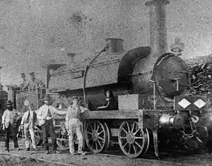 The first engine shed was established to the north end of the station opposite Tucker's Maltings. A workshop for the locomotive contractors was also established opposite the station and this was expanded over the years to include facilities for maintaining the railway's carriages and wagons.[7] An old 0-4-0 locomotive, Tiny, was installed in the workshops to power the machinery.[19] When it was no longer required for this role it was restored and put on display on the station platform. It has since been moved to the railway museum at Buckfastleigh and is the only original British 7 ft (2,134 mm) broad gauge locomotive that survives.