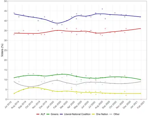 An election for the House of Representatives can be called at any time before the expiration of the three-year term of the House of Representatives[12] or up to ten days thereafter.[13] The term of the House of Representatives starts on the first sitting day of the House following its election, which in the case of the 46th Parliament was 2 July 2019. The Commonwealth Electoral Act 1918 (CEA) sets certain requirements. Up to 27 days must be allowed for nominations,[14] and the actual election can be set for a maximum of 31 days after close of nominations,[15] resulting in the latest election date for the House of Representatives being after the latest possible date for the next senate election.