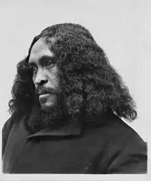 Tūhoe had little direct contact with the early European settlers.[1] The first major contact occurred when the iwi fought against the settler government in the battle of Ōrākau in 1864. Rewi Maniapoto, who had some tribal links to Tūhoe, visited the Urewera in 1862 and persuaded them to take part in the rebellion against the government; he went against the wishes of some of the elders. Initially reluctant, the Tūhoe gave Rewi ammunition to back the rebellion.[4] During a cease-fire in the Battle of Orakau, under a flag of truce, Gilbert Mair, a translator, was shot in the shoulder by a Tūhoe warrior. Nearly all the Tūhoe at the battle were killed.