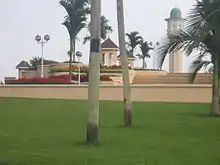 The city lies at the northern end of the railway to Yaoundé and is also home to Ngaoundéré Airport. Attractions in the city include the Lamido Palace and the Lamido Grand Mosque. The town is named after a nearby mountain on its eponymous plateau; the mountain's name is the Mbum word for "navel mountain".