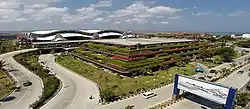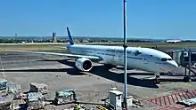 There have been several plans made seeking a solution to the expansion problems at Ngurah Rai International airport. There have been proposals to develop a north–south runway, but existing land use in the areas adjacent to the airport makes this idea unfeasible due to the considerable land purchase costs. A completely new airport was proposed to ease the airport' congestion due to the area surrounding the existing airport not supporting significant long-term expansion. A masterplan was announced for works at this airport for 2009–2011, which includes a new international terminal with 120,000 square meters in area to be built and the existing international terminal with area of 56.000 square meters will be renovated for use as a new domestic terminal. The new international terminal opened in November 2013, while the domestic terminal opened on 17 September 2014 with an area of 65,800 square meters, eight departure and seven arrival gates, five passenger boarding bridges, five conveyor belts, as well as more number of counters — 62 for check-in, 4 for transit and 19 for ticketing.[11] And can accommodate 25 million passengers a year until 2025.[12][13] This provided land for building a new horseshoe shaped building for 17 passenger aircraft parking at the east area on the former domestic terminal. The plan also incorporated a runway extension to 3,600 m. Currently airplanes up to the size of Boeing 747-400, Boeing 747-8, Boeing 777-300ER, Boeing 787-10, and Airbus A350-1000 can use the airport. Although Ngurah Rai International Airport already has a parking slot for the Airbus A380, some taxiway turns are still being widened to accommodate the superjumbo jet.[14]