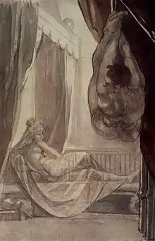 After having been forgotten for two hundred years, the Nibelungenlied manuscript C was rediscovered by Jacob Hermann Obereit in 1755.[77] That same year, Johann Jacob Bodmer publicized the discovery, publishing excerpts and his own reworkings of the poem. Bodmer dubbed the Nibelungenlied the "German Iliad" ("deutsche Ilias"), a comparison that skewed the reception of the poem by comparing it to the poetics of classical epic. Bodmer attempted to make the Nibelungenlied conform more closely to these principles in his own reworkings of the poem, leaving off the first part in his edition, titled Chriemhilden Rache, in order to imitate the in medias res technique of Homer. He later rewrote the second part in dactylic hexameter under the title Die Rache der Schwester (1767).[78] Bodmer's placement of the Nibelungenlied in the tradition of classical epic had a detrimental effect on its early reception: when presented with a full edition of the medieval poem by Christoph Heinrich Myller, King Frederick II famously called the Nibelungenlied "not worth a shot of powder" ("nicht einen Schuß Pulver werth").[79] Goethe was similarly unimpressed, and Hegel compared the epic unfavorably to Homer.[80] The epic nevertheless had its supporters, such as August Wilhelm Schlegel, who called it a "great tragedy" ("große Tragödie") in a series of lectures from 1802/3.[81] Many early supporters sought to distance German literature from French Classicism and belonged to artistic movements such as Sturm und Drang.[82]