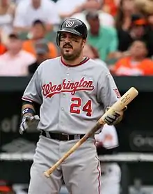 Nicholas Robert Johnson (born September 19, 1978) is an American former professional baseball first baseman and designated hitter. During his career Johnson played for the New York Yankees (2001–2003; 2010), Montreal Expos/Washington Nationals (2004–2009), Florida Marlins (2009), and Baltimore Orioles (2012).
