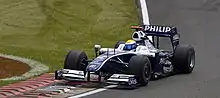 In April 2005, Rosberg was signed by Williams as its second test driver.[50] He and fellow driver Nelson Piquet Jr. were analysed extensively before Rosberg was selected.[51] He worked with Williams's test and reserve driver Antônio Pizzonia and continued to focus on the GP2 Series.[50][52] After race driver Nick Heidfeld was injured in a bicycle accident in September, Rosberg was shortlisted by Williams as his potential replacement for the final two races, the Japanese Grand Prix and the Chinese Grand Prix.[53] The team opted for Pizzonia because they did not want to risk delaying Rosberg's career by one to two years if he had a poor performance.[54]