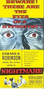 Nightmare is a 1956 American film noir crime film directed by Maxwell Shane starring Edward G. Robinson, Kevin McCarthy and Connie Russell.[1][2]
