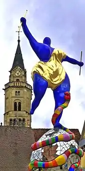 A critic has observed that Saint Phalle's "insistence on exuberance, emotion and sensuality, her pursuit of the figurative and her bold use of color have not endeared her to everyone in a minimalist age".[8] She was well known in Europe,[8] but her work was little-seen in the US, until her final years in San Diego. Another critic said: "The French-born, American-raised artist is one of the most significant female and feminist artists of the 20th century, and one of the few to receive recognition in the male-dominated art world during her lifetime".[9]