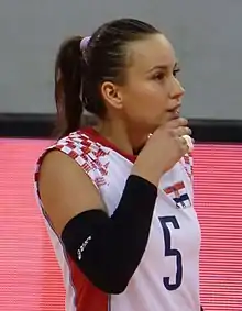 Nikolina Božičević (born 14 January 1995) is a Croatian volleyball player. She plays as libero for Romanian club CSU Galați.[1][2][3][4][5][6]