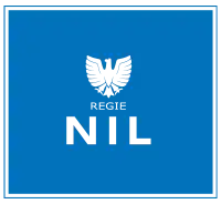 The logo of the NIL cigarettes consists of a blue rectangle, in which the lettering NIL in white capital letters is set, surmounted by a white eagle, with the word REGIE between them, referring to the former tobacco company.