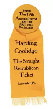 Between January 1918 and June 1919, the House and Senate voted on the federal amendment five times.[42][51][52] Each vote was extremely close and Southern Democrats continued to oppose giving women the vote.[51] Suffragists pressured President Wilson to call a special session of Congress and he agreed to schedule one for May 19, 1919. On May 21, 1919, the amendment passed the House 304 to 89, with 42 votes more than was necessary.[53] On June 4, 1919, it was brought before the Senate and, after Southern Democrats abandoned a filibuster,[42] 36 Republican Senators were joined by 20 Democrats to pass the amendment with 56 yeas, 25 nays, and 14 not voting. The final vote tally was:[54]