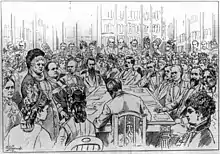 When the Fifteenth Amendment enfranchised African-American men, Elizabeth Cady Stanton and Susan B. Anthony abandoned the AERA, which supported universal suffrage, to found the National Woman Suffrage Association in 1869, saying black men should not receive the vote before white women.[38] In response, African-American suffragist Frances Ellen Watkins Harper and others joined the American Woman Suffrage Association, which supported suffrage for women and for black men. Mary Ann Shadd Cary, the second African-American woman to receive a degree from Howard University Law School, joined the National Woman Suffrage Association in 1878 when she delivered their convention's keynote address.[41] Tensions between African-American and white suffragists persisted, even after the NWSA and AWSA merged to form the National American Woman Suffrage Association in 1890.[38] By the early 1900s, white suffragists often adopted strategies designed to appease the Southern states at the expense of African-American women.[42][43] At conventions in 1901 and 1903, in Atlanta and New Orleans, NAWSA prevented African Americans from attending. At the 1911 national NAWSA conference, Martha Gruening asked the organization to formally denounce white supremacy. NAWSA president Anna Howard Shaw refused, saying she was "in favor of colored people voting", but did not want to alienate others in the suffrage movement.[44] Even NAWSA's more radical Congressional Committee, which would become the National Woman's Party, failed African-American women, most visibly by refusing to allow them to march in the nation's first suffrage parade in Washington, D.C. While the NAWSA directed Paul not to exclude African-American participants, 72 hours before the parade African-American women were directed to the back of the parade; Ida B. Wells defied these instructions and joined the Illinois unit, prompting telegrams of support.[44]