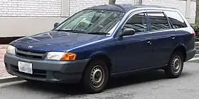 The Wingroad JS trim level shares an appearance with the larger Nissan Avenir Blastar, and both also use a two-tone paint scheme.