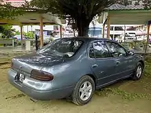 Like the Stanza before it, the original Altima was the export version of the Nissan Bluebird SSS (chassis model U13), though its original styling hailed from Nissan's California design group (Blue Studio under Allan Flowers) in 1989. Initially, the car's official name was "Stanza Altima," which appears on the early owners manuals. 1993 models can be seen with a sticker reading "Stanza" in small lettering to the right of the ALTIMA emblem on the trunk lid.[3]