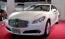 The Nissan Cima (Japanese: 日産・シーマ, Nissan Shīma) is a luxury sedan produced by Nissan for the Japanese market. The car's name is derived from Spanish for "summit". The hood ornament uses an image of an acanthus leaf. The acanthus leaf was commonly used by classical Greeks to make a wreath for use as a crown.