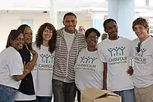 Asomugha joined former President Bill Clinton, Matthew McConaughey, and Marie Tillman at the 2009 Meeting of Clinton Global Initiative University (CGI U) hosted by The University of Texas at Austin to discuss the importance of global service and student activism. CGI U is President Clinton's youth initiative designed to challenge college students to take action on some of the most pressing global issues in areas such as education, poverty and global health. At CGI U, Asomugha spoke to over 1,200 student leaders, university presidents and leaders of national youth organizations about his philanthropic efforts in Nigeria and Oakland, CA .[61] He has been an invited guest and has participated in the Clinton Global Initiative every year since 2009.[62][63]