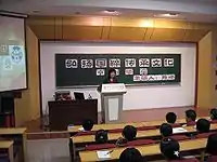 The school administration had been highly concerned about the audiovisual means conducive to multimedia education. In 2007, the school leadership invited tenders. Eventually, it chose Anliang Technology Co., Ltd (安良科技公司) for the operation of the multimedia installment around every corner in the school.[6] All the classrooms were fit with computer systems and projectors. The computers are embedded in the platform desks and are linked to the entire school's networks. Bidirectional closed-circuit television (CCTV) system is available. As every classroom is accessible to Internet, it has proved to be very convenient when such demand exists during some classes.[7] The school has operated its own campus website since 2005, on which it can release campus news and issue circulars to the public.