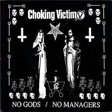 No Gods / No Managers is the only full-length studio album by American hardcore punk band Choking Victim. The album was released in 1999 through Hellcat/Epitaph Records and re-released on LP format by Epitaph in 2004. Being the sole full-length album of Choking Victim, (they broke up immediately after recording the album), it became hugely popular in the punk scene. It inspired many nascent bands, and the band members of Choking Victim went on to form other bands, most notably Leftöver Crack.