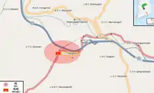 On July 25, as North Korean forces seized the town of Yongdong, 7 miles (11 km) west of No Gun Ri, U.S. troops were evacuating nearby villages, including hundreds of residents of Chu Gok Ri and Im Ke Ri. These villagers were joined by others as they walked down the main road south, and the estimated 600 refugees spent the night by a riverbank near Ha Ga Ri village, 3.5 miles (5.5 km) west of No Gun Ri. Seven refugees were killed by U.S. soldiers when they strayed from the group during the night. In the morning of July 26, the villagers found that the escorting soldiers had left. They continued down the road, were stopped by American troops at a roadblock near No Gun Ri, and were ordered onto the parallel railroad tracks, where U.S. soldiers searched them and their belongings, confiscating knives and other items. The refugees were resting, spread out along the railroad embankment around midday, when military aircraft strafed and bombed them.[12]:69–72 Recalling the air strike, Yang Hae-chan, a 10-year-old boy in 1950, said the attacking planes returned repeatedly, and "chaos broke out among the refugees. We ran around wildly trying to get away."[13] He and another survivor said that soldiers reappeared and began shooting the wounded on the tracks.[14][15] Survivors first sought shelter in a small culvert beneath the tracks, but soldiers and U.S. ground fire drove them from there into a double tunnel beneath a concrete railroad bridge. Inside the bridge underpasses, each 80 feet (24 m) long, 22 feet (6.5 m) wide and 40 feet (12 m) high, they came under heavy machine gun and rifle fire from 7th Cavalry troops from both sides of the bridge.[12]:71 "Children were screaming in fear and adults were praying for their lives, and the whole time they never stopped shooting," said survivor Park Sun-yong, whose 4-year-old son and 2-year-old daughter were killed, while she was badly wounded.[13]