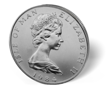 Obverse: It shows a portrait of Queen Elizabeth II with the text Isle of Man and Elizabeth II in capitals. There have been four different portraits of Queen Elizabeth used on the coins. The 1984 coin showed the second coin portrait, done when the Queen was in her early 40s. The third coin portrait, of the Queen in her 50s, was used between 1985 and 1997. The fourth portrait, of the 70-year old Queen, was used between 1998 and 2014. Since 2015, the fifth coin portrait has been used.