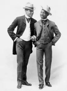 "Nobody" embodies the struggle that Bert Williams and George Walker went through during their lives both as citizens and performers on the vaudeville stage. As black men living during the Jim Crow era when blacks were openly disenfranchised, Williams and Walker used their platform to protest such flagrant racism. Off the stage, they were accomplished individuals who tried to separate themselves as distinguished and sophisticated; thus, defying the pervasive stereotypes of black men. Traveling as a performer, Williams faced issues with hotels not letting him use the same elevators or facilities as whites, and white performers not wanting to perform with him. He took those experiences to the stage with him, giving the audience his real life that they could relate to.[3] As the businessman of the group, Walker was in charge of managing and handling the dealings of Williams and Walker Co. He likewise experienced the realities of being black in a business that did not cater to black performers.[4] Trying to combat their own realities and the known condition of blacks in America, Williams used the song as a statement. Debuting in Abyssinia, the song was part of an effort to regain legitimacy and agency for the black community.