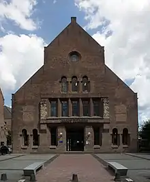 After World War II the usual business of the museum resumed. In 1947 it hosted the academy days of the Royal Netherlands Academy of Arts and Sciences.[16] In 1949 it hosted an exposition about the poet Guido Gezelle, connected to the congress 'Art and Christianity'.[17] The visual arts got an exposition of the work of Herman Moerkerk in December 1949.[18] Meanwhile change was in the air. In 1949 North-Brabant and Limburg counted for 20% of the Dutch population, but got only 3% of the national subsidies for culture.[19] It was clearly an untenable situation. It was also clear that the position of the 'elitist' Society for Arts and Sciences, which had paid many bills, would suffer if other means became available. The Van Abbemuseum in Eindhoven was considered to be the only up to date museum in Noord Brabant.[19]