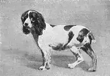 The Kennel Club (UK) designated all medium legged spaniels which were not Clumber nor Sussex Spaniels as English Springer Spaniels in 1902.[11][12] The Norfolk Spaniel was included under this designation, with the term "Norfolk Spaniel" considered for use to cover these types of spaniels, but ultimately rejected as the Club believed that the breed was always liver and white in colour.[11] The change in terminology was not smooth or immediate, with James Watson in his 1905 work, The Dog Book, still referring to the Norfolk Spaniel as a breed name.[8] In the modern era, the Norfolk Spaniel is thought to be the previous name for the English Springer Spaniel, prior to recognition by The Kennel Club (UK).[13]