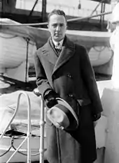 Norman Rockwell was born on February 3, 1894, in New York, NY to Jarvis Waring Rockwell and Anne Mary "Nancy" Rockwell, born Hill.[13][14][15] His earliest American ancestor was John Rockwell (1588–1662), from Somerset, England, who immigrated to colonial North America, probably in 1635, aboard the ship Hopewell and became one of the first settlers of Windsor, Connecticut. He had one brother, Jarvis Waring Rockwell, Jr., older by a year and a half.[16][17] Jarvis Waring, Sr., was the manager of the New York office of a Philadelphia textile firm, George Wood, Sons & Company, where he spent his entire career.[16][18][19]