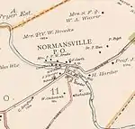 In 1886, the hamlet of Normansville (which then included both sides of the Normans Kill) included approximately 100 individuals, 22 families, and 17 dwellings.[2] In 1993, it was estimated that the Bethlehem neighborhood of Normansville consisted of 50 people, 19 homes, and one church.[12]