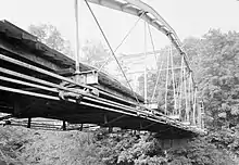 In the 1980s and 1990s, several changes occurred in the area that had been known as Normansville. In 1986, the original yellow brick turnpike was paved over.[8] In 1987, the Town of Bethlehem closed the Rockefeller Road Bridge due to safety concerns. Rockefeller Road was connected to Kenwood Avenue by way of a 1914 bridge over the (now-abandoned) Delaware and Hudson Railroad tracks. The closure of the bridge was supported by the Normansville Neighborhood Association due to a desire to prevent drivers from using Rockefeller Road as a shortcut between Kenwood and Delaware Avenues.[9] In January 1990, the Old Normans Kill Bridge was closed to vehicular traffic.[10][11] In the 1990s, the Normanskill Viaduct was dismantled and replaced by a new bridge 50 feet upstream.[12][13]
