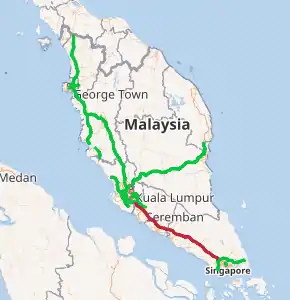 | Primary destinations | Kuala Lumpur Seremban Melaka City Muar Batu Pahat Johor Bahru |