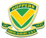 The North Albury Football Netball Club, nicknamed the Hoppers, is an Australian rules football and netball club playing in the Ovens & Murray Football League (O&MFL). They are incorporated as part of the North Albury Sports Club licensed club at Bunton Park in North Albury, Albury, where they play their home matches. The club has won six O&MFL premierships. The Hoppers currently play in forest green guernseys with a gold vee and the "Hopper" logo on the right side. Previous guernsey designs included a dark green and gold design similar to the West Coast Eagles' classic wingtip design (up to 2008) and a gold design with two dark green vees over the yoke. The club song is a version of "Join in the Chorus" with some words altered from the AFL Kangaroos version.