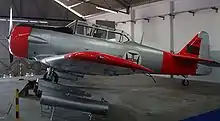 The South African Air Force received their first T-6s in October 1942 to be used by the Joint Air Training Scheme. By July 1944, 633 Harvard Mk IIA T-6s and IIIs had been shipped to South Africa with another 555 (379 MkIIAs and 176 Mk IIIs) to arrive by October 1945. Another 65 (AT-6Ds and 30 T-6Gs) were ordered between 1952-1956.[6] The T-6 remained in service until 1995 as a basic trainer, mainly as a result of the United Nations arms embargo against South Africa's apartheid policies. They were replaced by Pilatus PC-7 MkII turboprop trainers.[7]