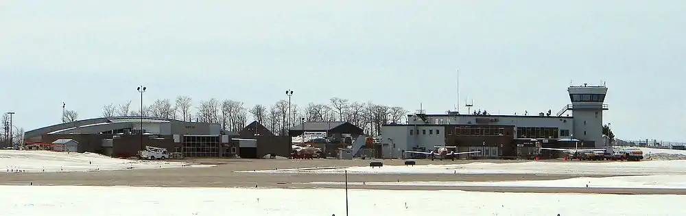 The first terminal was constructed in 1938 to house a small waiting area on the ground floor and control tower on the second.[7] Upgrades after World War II led to the second terminal being built in 1963, which now serves as the Administration Building and has offices for airport administration, Nav Canada, Canada Border Services Agency, and others. The current terminal was built in 2001 and has been renovated (completed 2010)[8] to accommodate additional airline offices, a larger post screening waiting area with washrooms.[6] The North Bay Jack Garland Airport terminal is easily accessible, with curbside access and automatic doors throughout, and now has: