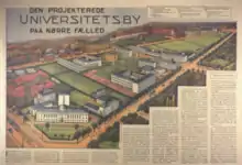 The vision for the University Park area was the brainchild of architect Kaj Gottlob in 1930, with buildings along Nørre Allé and Jagtvej encircling a central green area.