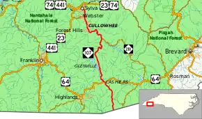 North Carolina Highway 107 (NC 107) is a primary state highway in the U.S. state of North Carolina. The highway runs north–south from the South Carolina state line, near Cashiers, to US 23 Business in Sylva.